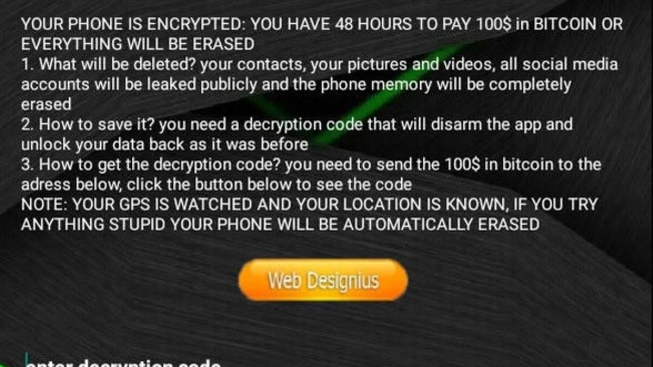 به گزارش معاونت بررسی مرکز افتا، به نقل از DomainTools، در صورت دانلود و اجرای این برنامه مخرب، صفحه گوشی قفلشده و یک پیام باجخواهی برای کاربر نمایش داده میشود. در پیام باجخواهی ادعا میشود که تلفن همراه رمزگذاری شده و تمامی محتوای آن شامل لیست مخاطبین، تصاویر، ویدئوها و غیره در صورت عدم پرداخت باج ۱۰۰ دلاری بهصورت بیت کوین تا ۴۸ ساعت آینده، حذف میشوند. همچنین برنامه ادعا میکند که حسابهای شبکههای اجتماعی قربانی را نیز بهصورت عمومی منتشر میکند.