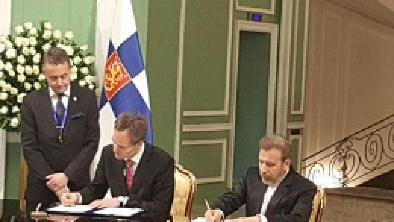 همچنین سه یادداشت تفاهم در بخشهای انرژی، محیطزیست و سرمایهگذاری نیز به ترتیب به امضای وزیر نیرو، رئیس سازمان جنگلهای ایران و معاون وزیر امور اقتصادی و دارایی و طرف فنلاندی رسید.