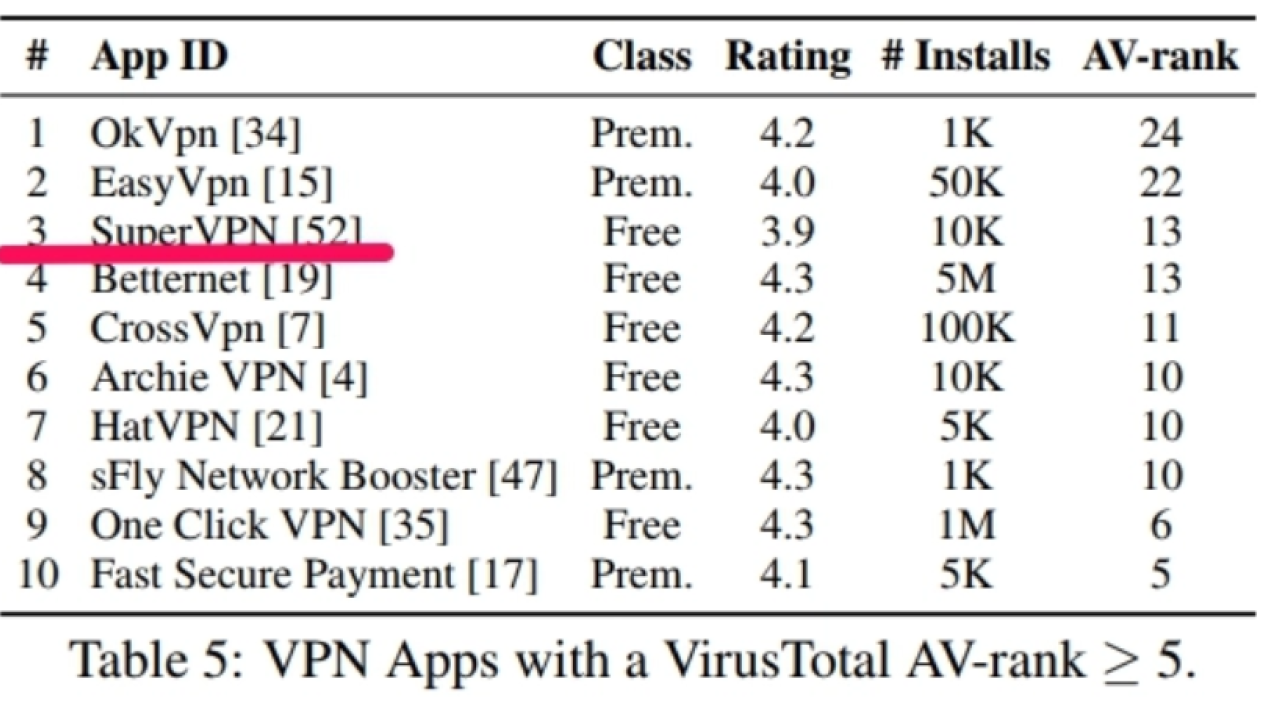 همچنین برنامه Supervpn مطابق شکل شماره 1 پیشتر در سال 2016 در مقالهای پژوهشی بهعنوان برنامه مخرب شناختهشده بود.